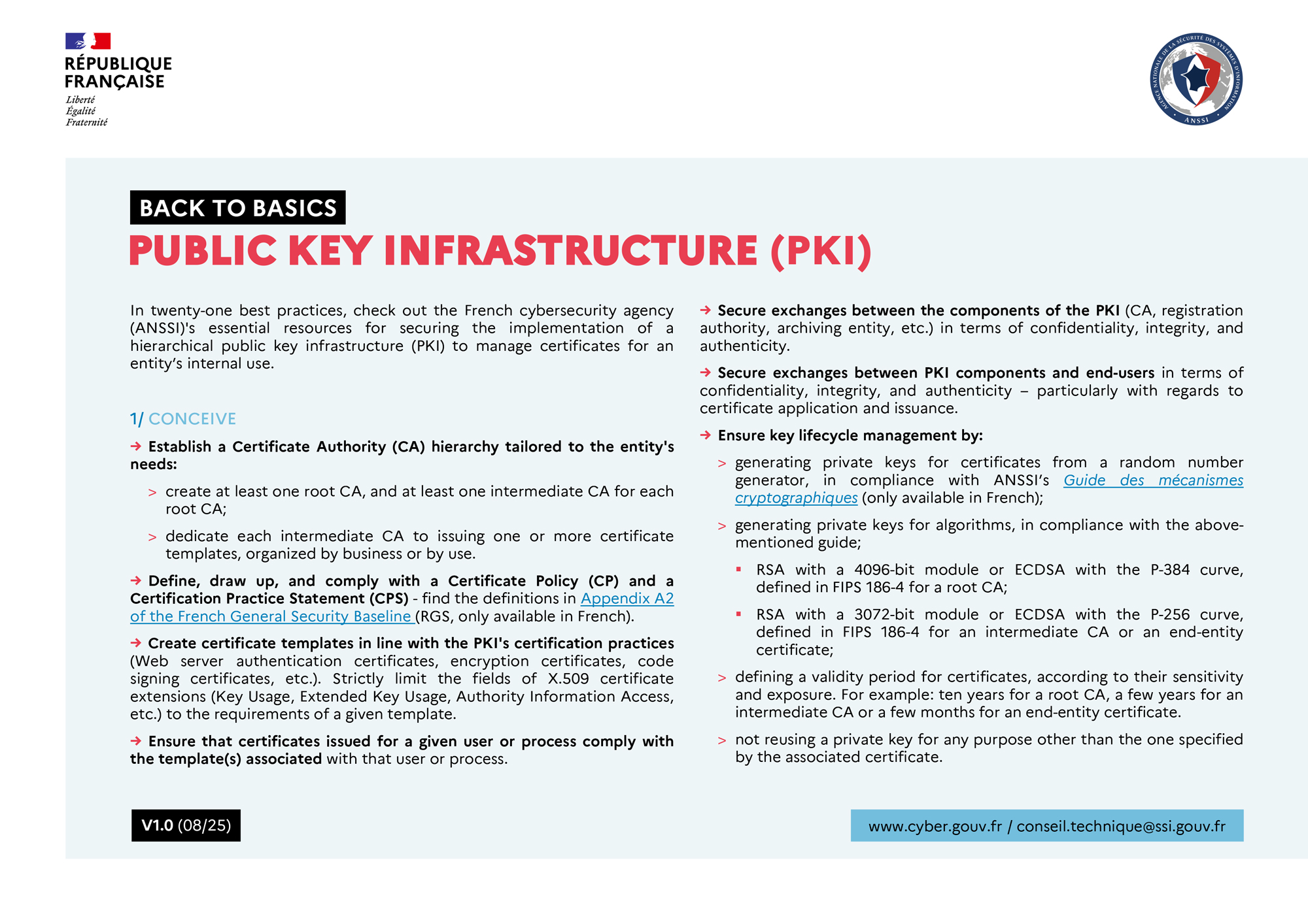 In twenty-one best practices, check out ANSSI's essential resources for securing the implementation of a hierarchical public key infrastructure (PKI) to manage certificates for an entity’s internal use.