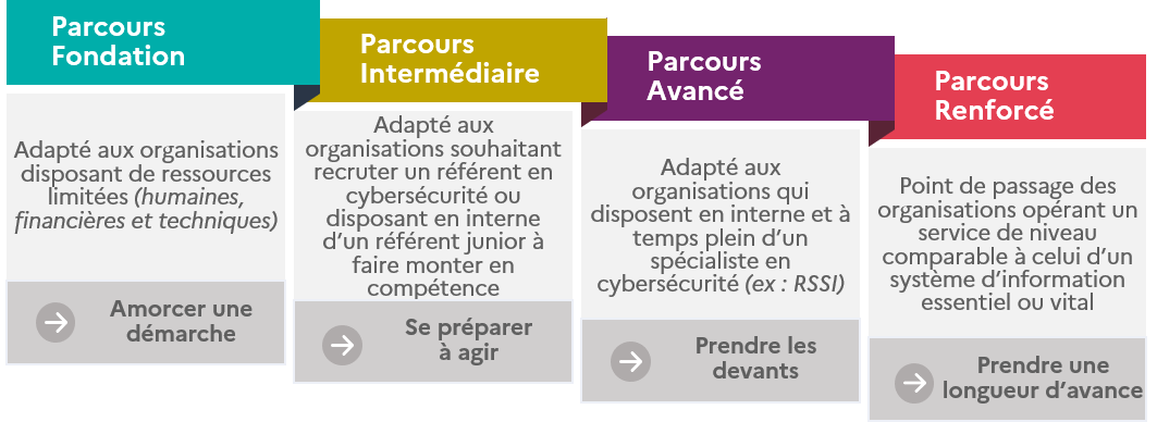 Ces parcours ont permis d’initier une démarche méthodique de sécurisation des systèmes d’information. Déclinés selon 4 enjeux, ces parcours ont permis d’atteindre un objectif de cybersécurité de façon progressive, mesurable et adaptée à chaque bénéficiaire, en adéquation avec le niveau de menace et de maturité.